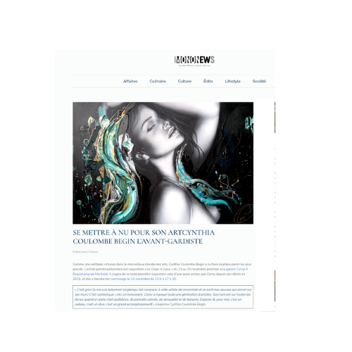«L’écriture de ce livre a été la réalisation d’une œuvre d’art en soi. Cela m’a permis de réaliser l'ampleur de mes réalisations depuis ces quinze dernières années. Je remarque que je suis en perpétuelle quête de sens et que ma peinture est représentative de ce que j’ai vécu à chaque époque.» - Cynthia Coulombe Bégin