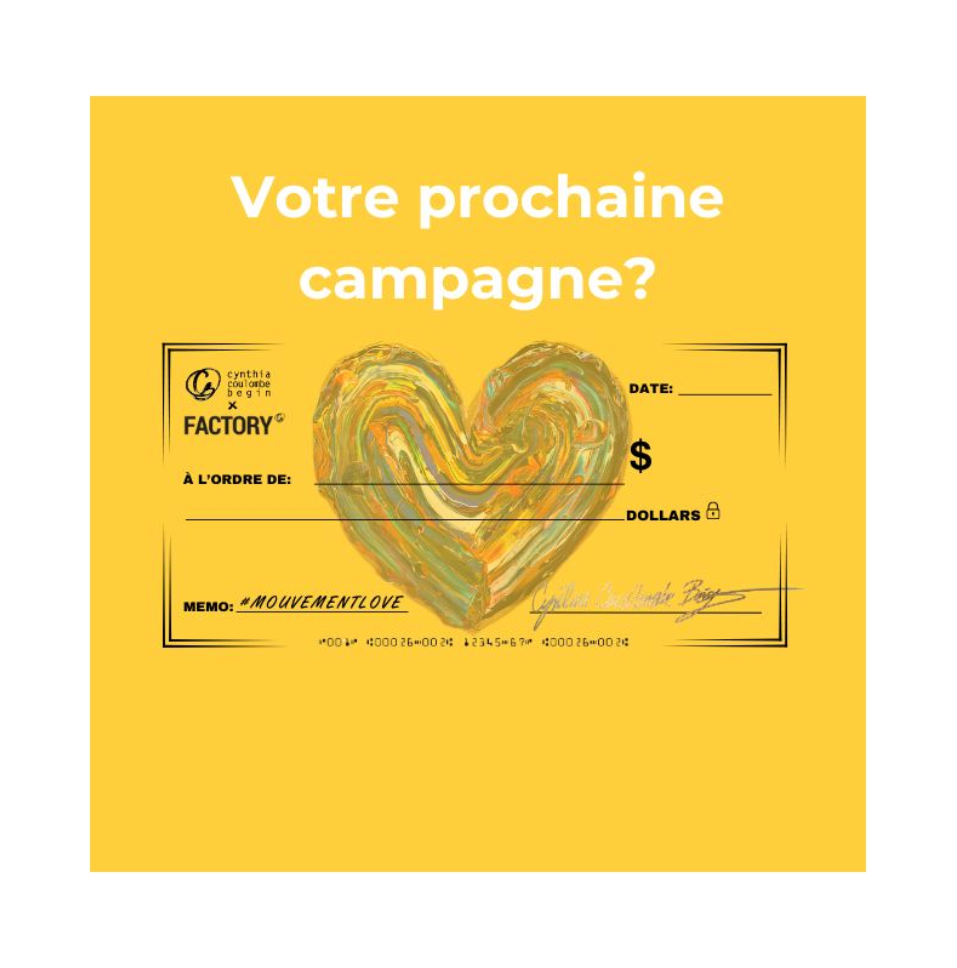 100% des profits des ventes iront soutenir la campagne de financement de la Fondation choisie.